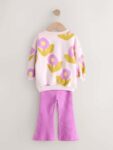 Let your little one’s imagination take flight in our adorable pink fairy sweatshirt and flared leggings set. This charming two-piece outfit is designed for both magical adventures and cosy moments. Designed with sweet fairy and bow detail to sweater and matching ribbed leggings.