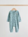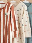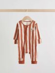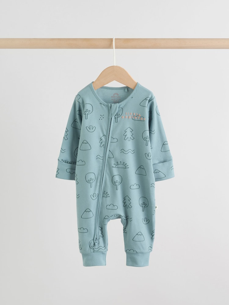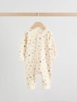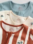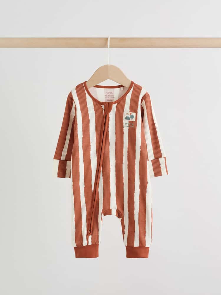 Keep your little one snug in this 3 pack of Minerals Woodland sleepsuits. The super soft cotton fabric is gentle on their skin, while the two-way zip fastening makes dressing and nappy changes quick and easy. The pack features assorted prints, including stripes and dots, and is finished with inner lined feet and turn-back scratch mitts up to 3-6 months.