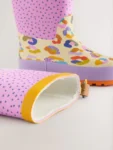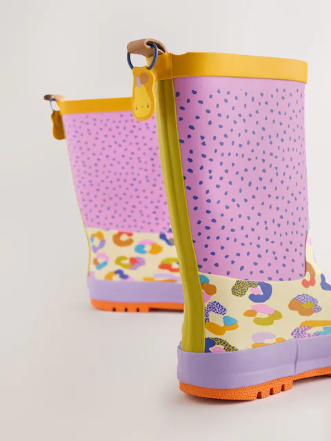 Our printed wellies are the perfect choice for their rainy day adventures. Sitting just above the ankle, these durable boots are designed with a slip resistant sole for added grip when it rains. Coated in a fun printed design and finely finished with a pull-tab for easy wear.