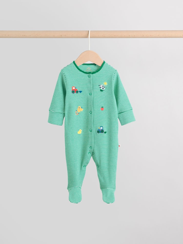 An essential and charming set for the layette, this Multi Farm 3 Pack Baby Sleepsuits set provides both comfort and value. Each suit is crafted from Super Soft Cotton and features a convenient Popper Front Fastening for easy changes. Designed for safety, they include Turn Back Scratch Mitts up to 3-6months, Inner Lined Feet with an Anti Slip Sole Print From 9-12 Months, and are guaranteed to contain No Harmful Chemicals or Dyes / Nickel Free Poppers.