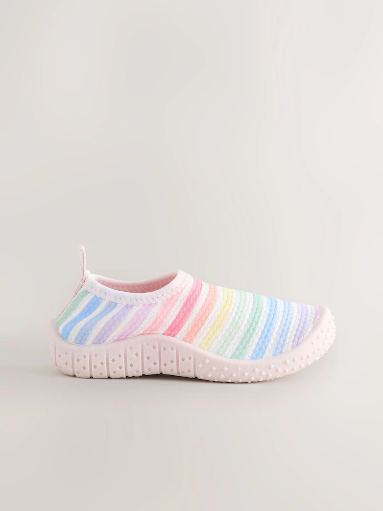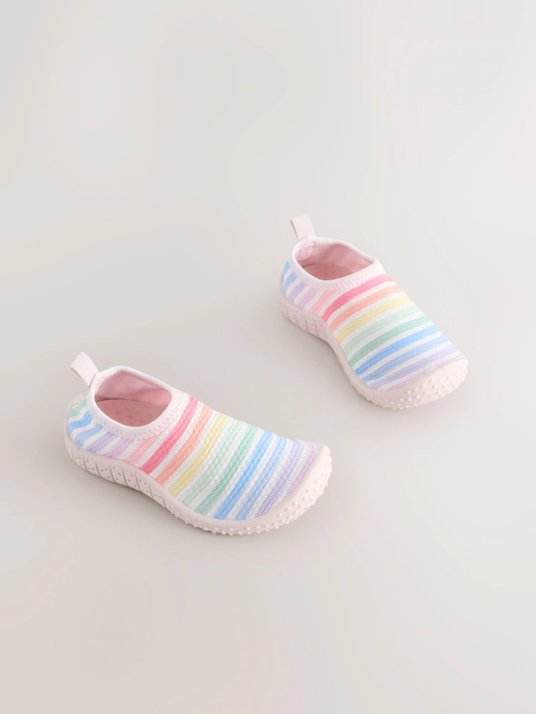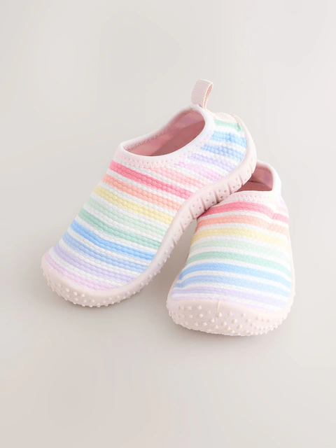 Introduce a fun, secure accessory for water play with these colourful Multi Stripe Swim Socks. Designed as a perfect swim / beach sock, they offer easy protection for young feet. The socks feature a reliable slip resistant durable sole for confident steps in and out of the water.