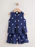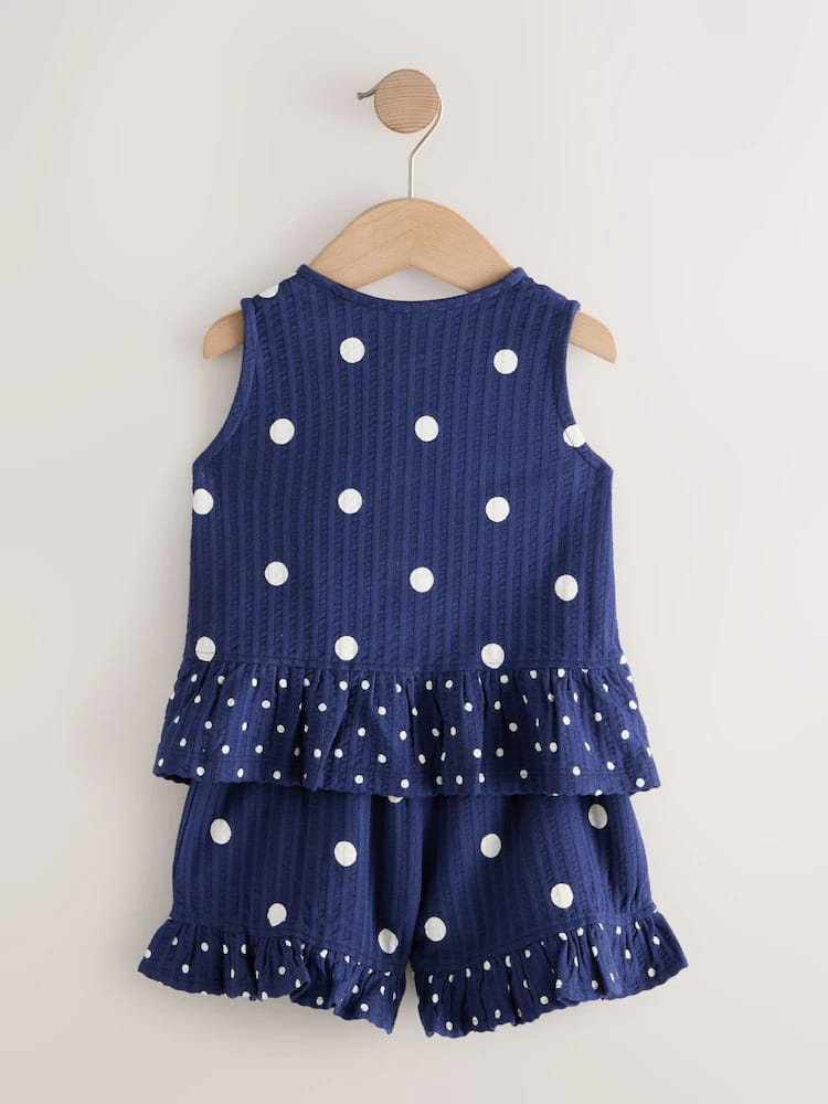Keep them looking stylish and feeling comfortable throughout the warmer months with this Peplum Vest and Shorts Set, a true summer favourite. This coordinated two-piece outfit is designed for ease and play, making it a versatile addition to any sunny-day wardrobe. The sleeveless top features a classic button front and a flared peplum silhouette for a sweet, airy fit. It is perfectly paired with matching shorts that boast a flexible elasticated waist and a playful frill hem. Available in a range of different designs, this lightweight set is perfect for summer adventures.
