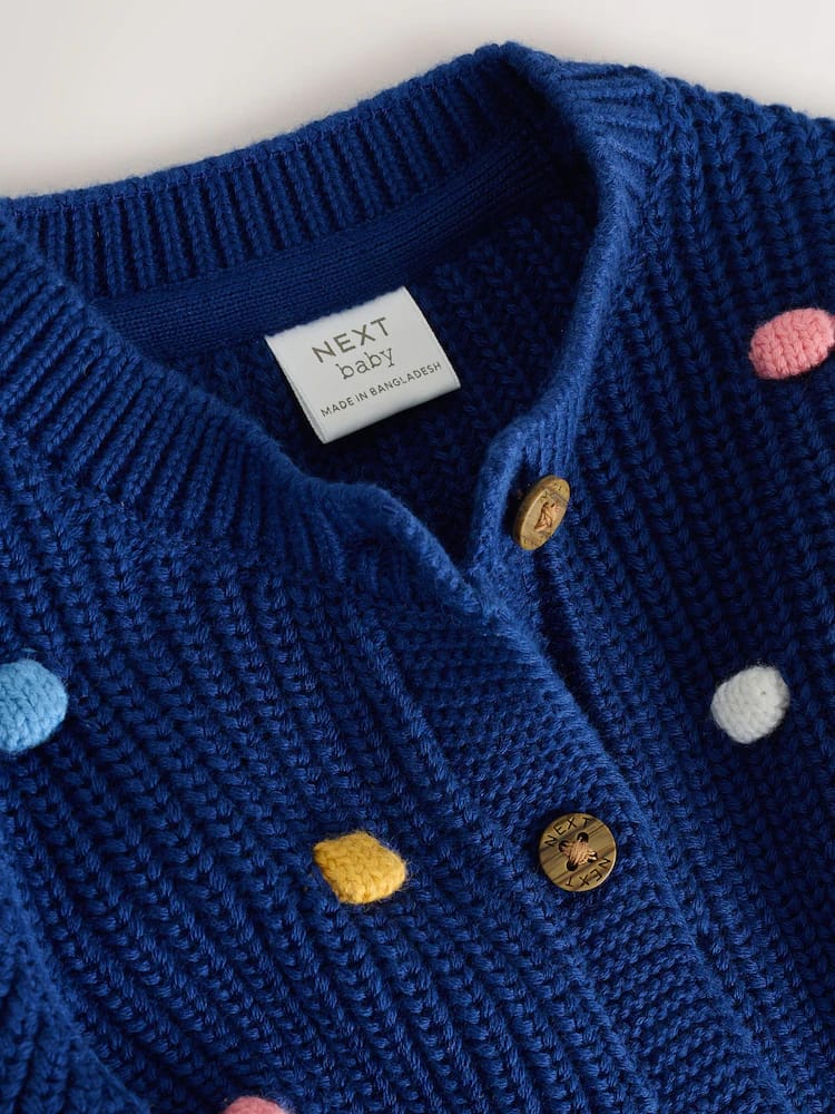 Navy and Multi Colour Bobble Baby Knitted Cardigan