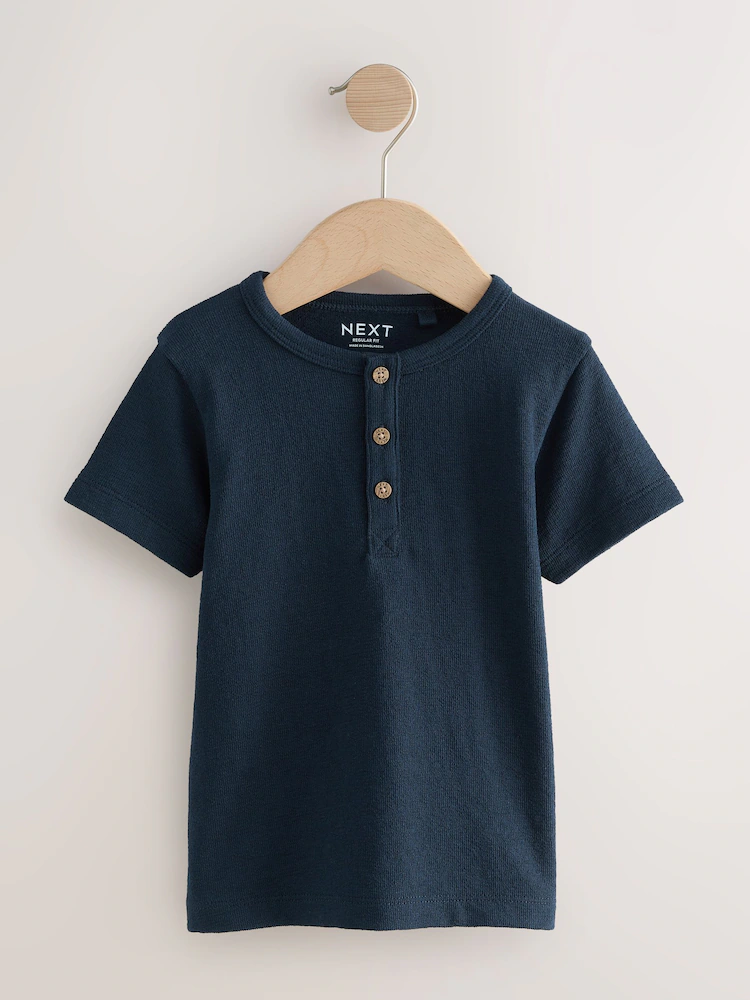 Update the essential wardrobe with this versatile Navy/Blue/Stone Short Sleeve Henley Neck T-Shirts 3 Pack. This practical 3 pack of Henley’s features a neat Button up neck detail on each top, providing an easy and smart casual layering option. Crafted for comfortable everyday wear, these short sleeve tees are a foundational staple for any outfit.
