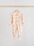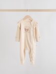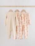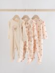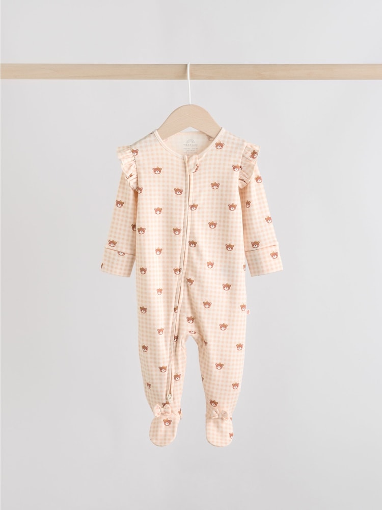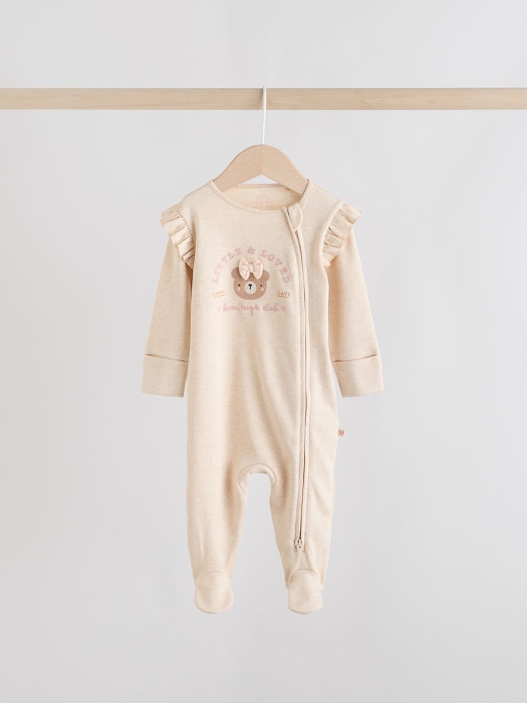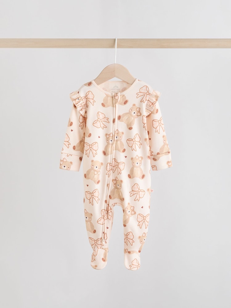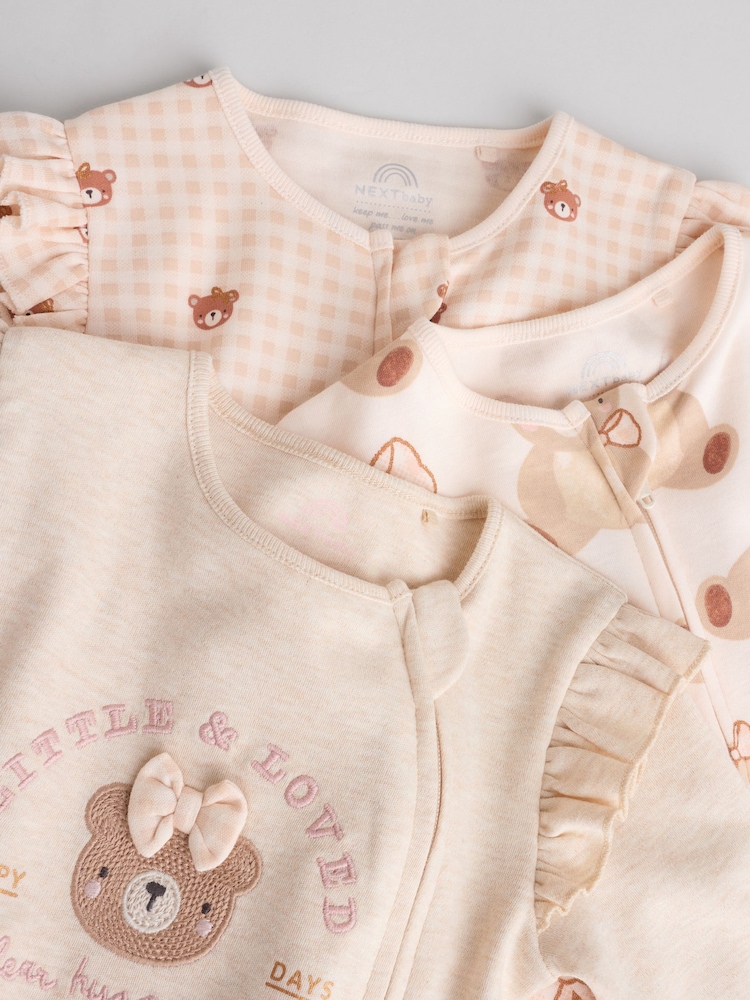 Keep your little one cosy in this 3 pack of neutral bear sleepsuits. The super soft cotton fabric is gentle on their skin, while the two-way zip fastening makes dressing and nappy changes quick and easy. With a mix of charming bear print designs and plain options, these sleepsuits are finished with inner lined feet and turn-back scratch mitts up to 3-6 months.