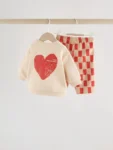 Cream/ Pink Bunny Rabbit Baby Sweater and Joggers Set 2 Piece(0)