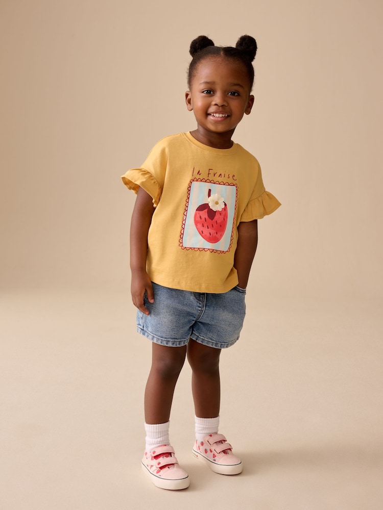 Discover this short-sleeved t-shirt with 3D flower details, crafted for daily comfort and style. The breathable cotton-rich jersey fabric ensures a soft feel against the skin, making it an ideal choice for active youngsters during warmer weather.