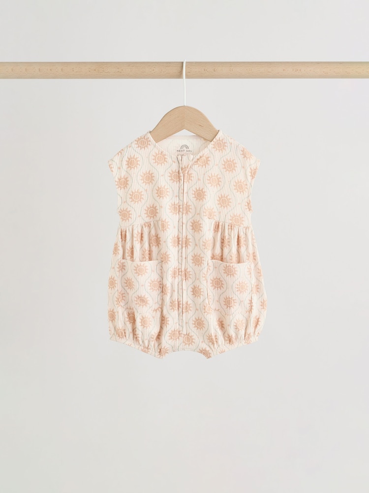 These orange tonal patterned rompers feature a convenient zip-front placket and popper leg opening.