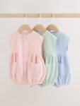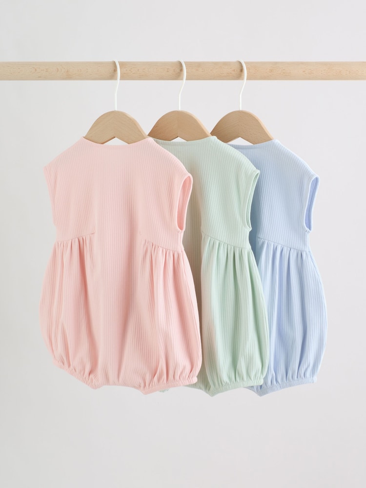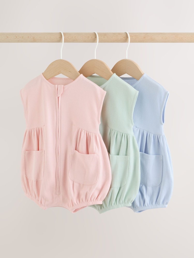 This 3 pack of rompers feature a convenient zip-front placket and popper leg opening.