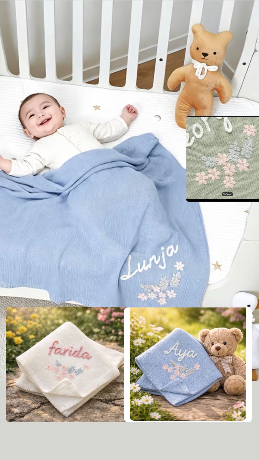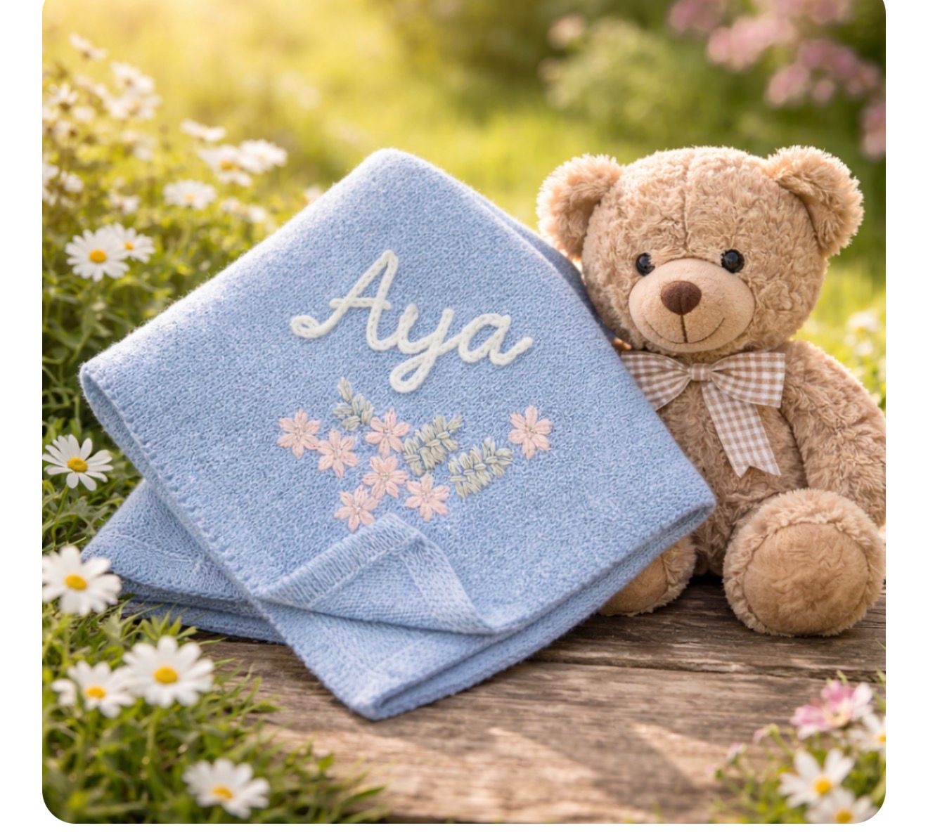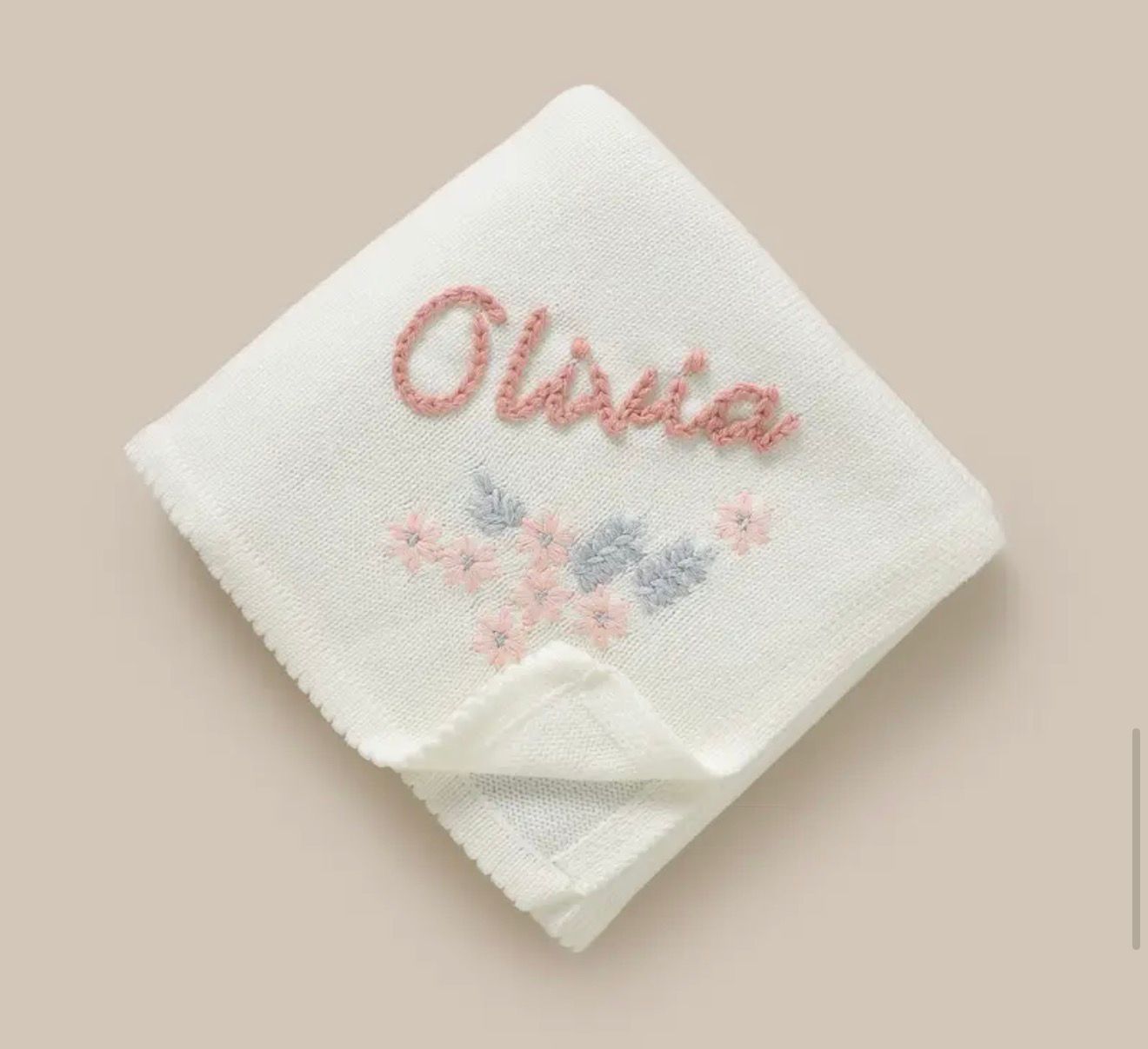 personalized Embroidered Blanket – 100.0X80.01 cm, Available in Three Soft Colors (Pink, Beige, Blue) – a Comfortable Gift for All Seasons, Perfect for Birthdays, Anniversaries, Housewarming Celebrations, Featuring Floral Patchwork, Fun Designs
