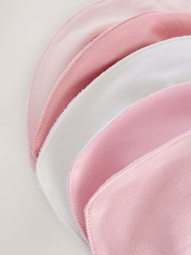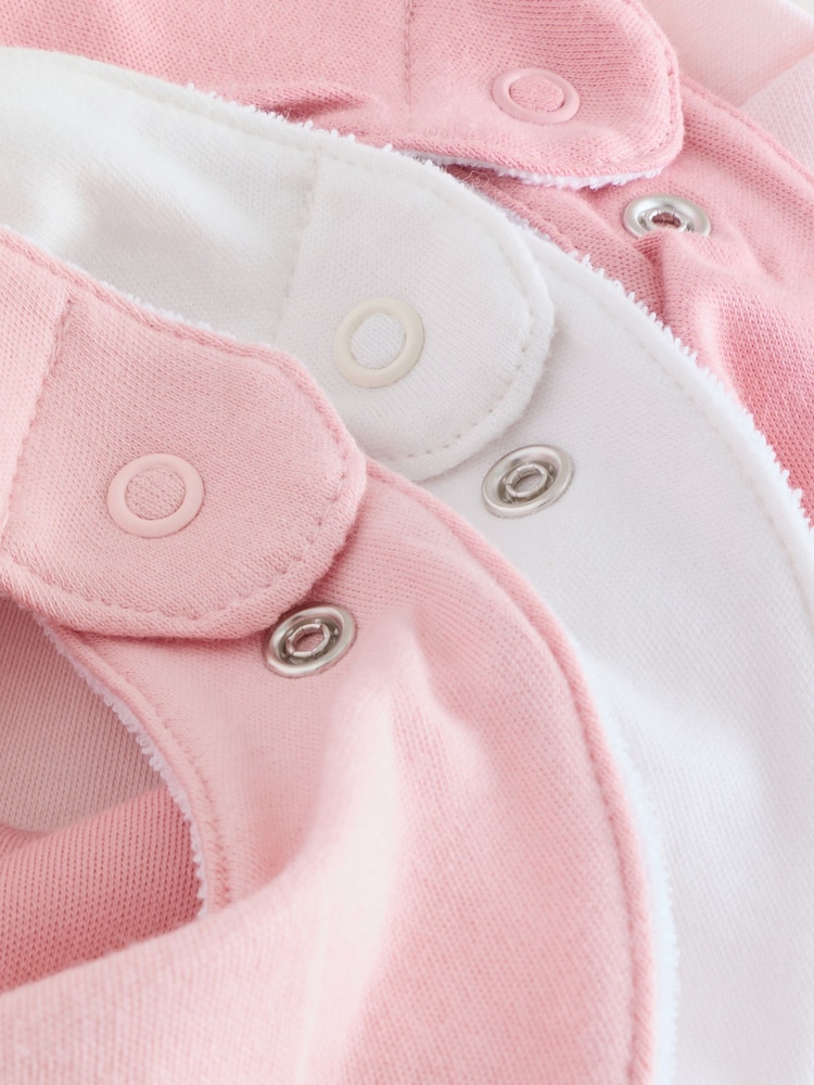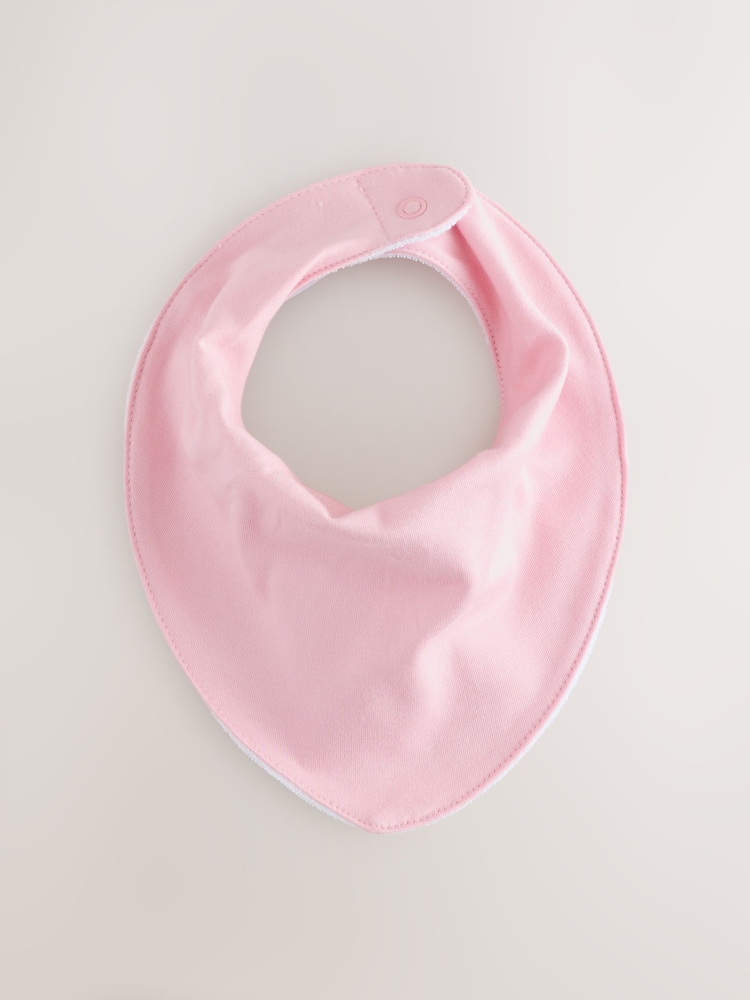 This handy 5-pack of dribble bibs is a great way to stock up on baby essentials, featuring neutral and pink hues, finished with a press-stud fastening to the back of the neck.