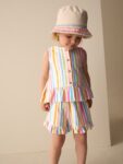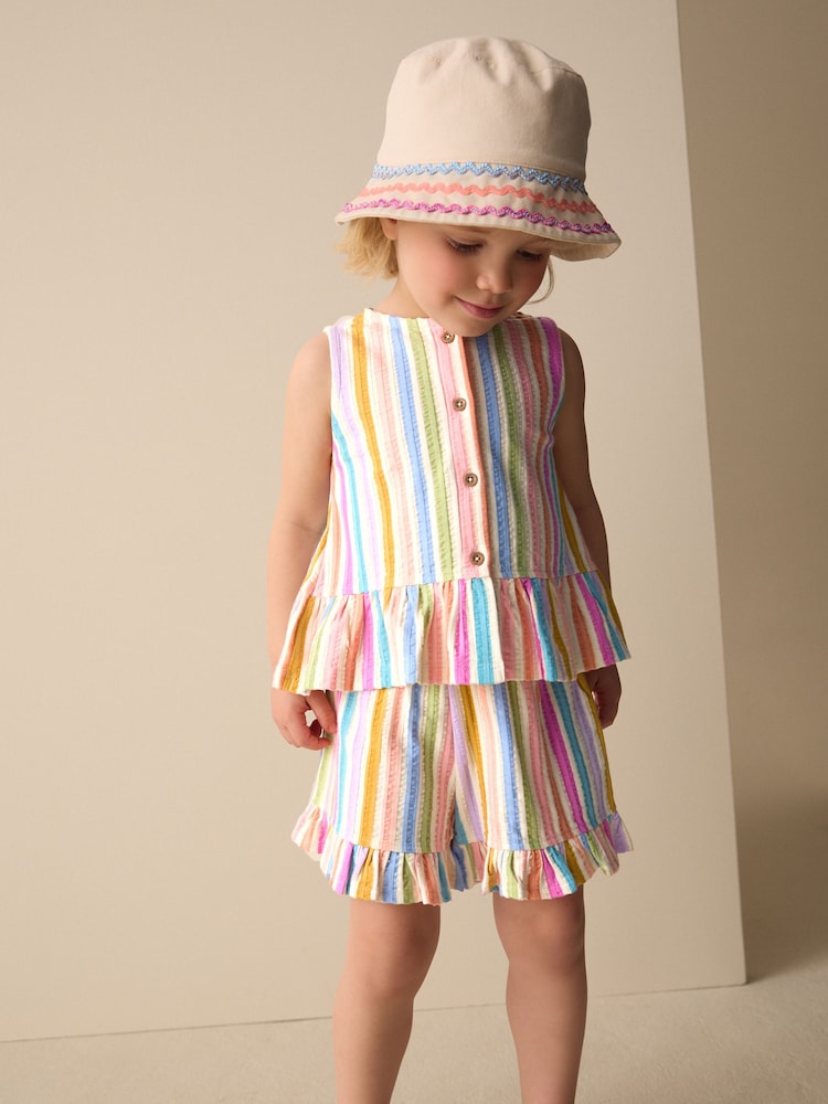 Keep them looking stylish and feeling comfortable throughout the warmer months with this Peplum Vest and Shorts Set, a true summer favourite. This coordinated two-piece outfit is designed for ease and play, making it a versatile addition to any sunny-day wardrobe. The sleeveless top features a classic button front and a flared peplum silhouette for a sweet, airy fit. It is perfectly paired with matching shorts that boast a flexible elasticated waist and a playful frill hem. Available in a range of different designs, this lightweight set is perfect for summer adventures.