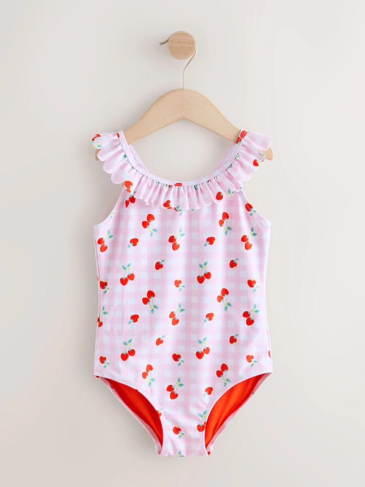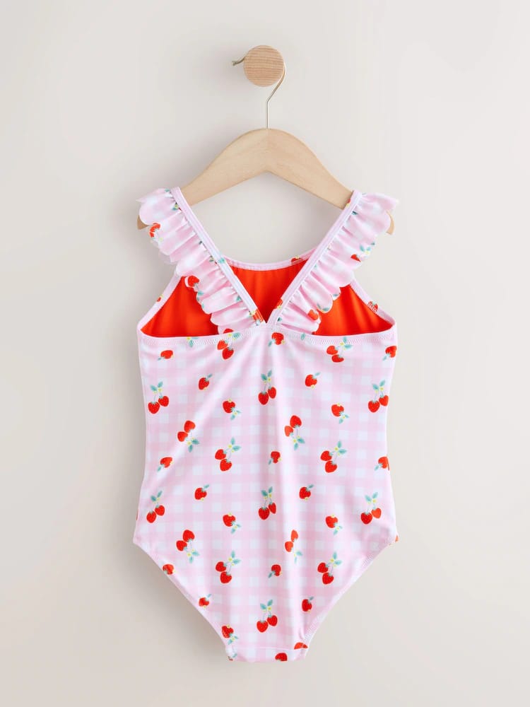 Pink Cherry Gingham Frill Swimsuit