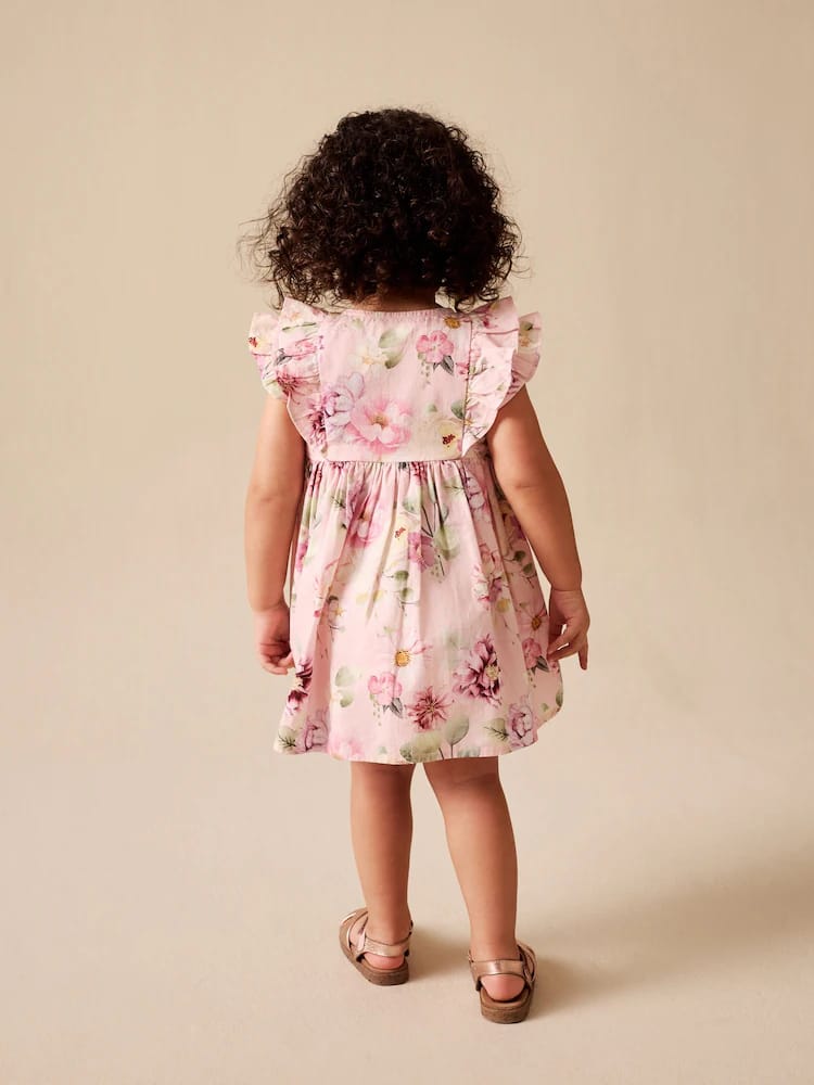 This delightful Double Ruffle Sleeve Dress is the perfect beautiful dress for warmer months for your little one. Crafted from soft, breathable cotton fabric, it ensures comfort for all-day adventures. It features a charming pretty double frill detail on the sleeves and a practical buttonthrough front, blending playful style with easy dressing.