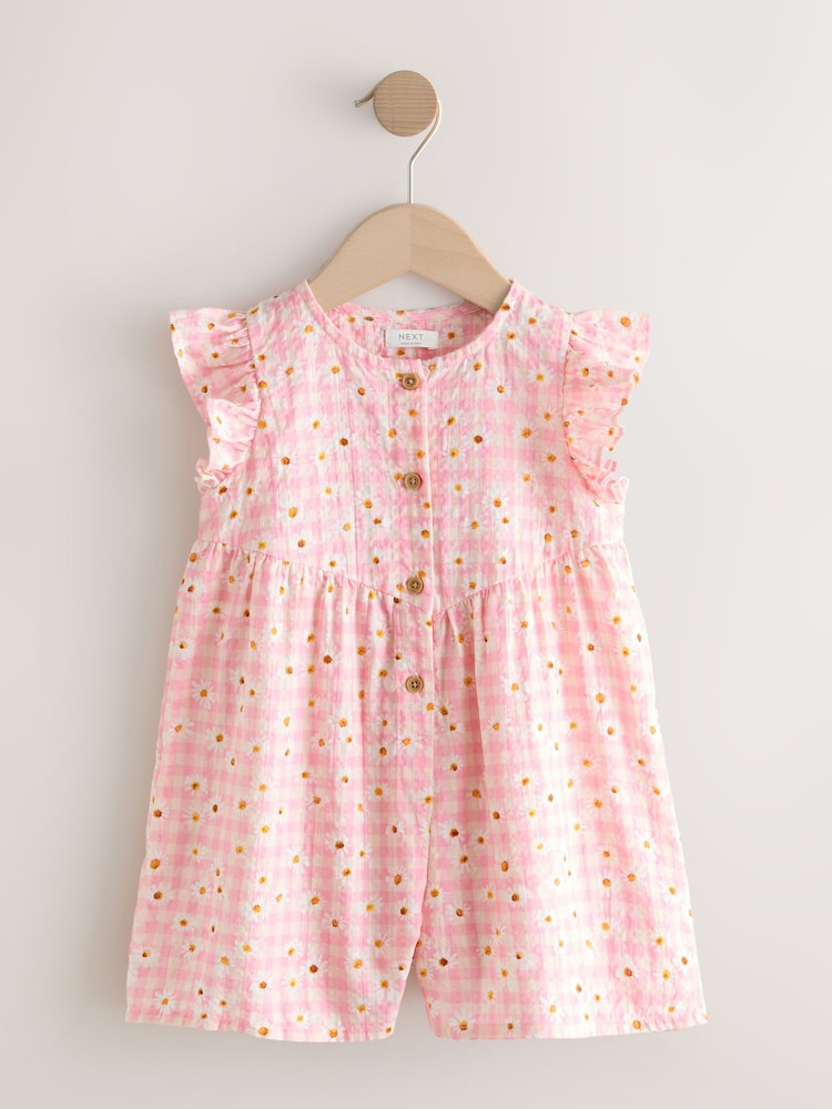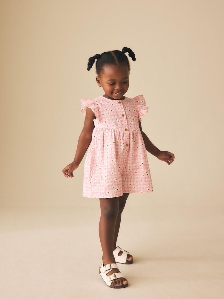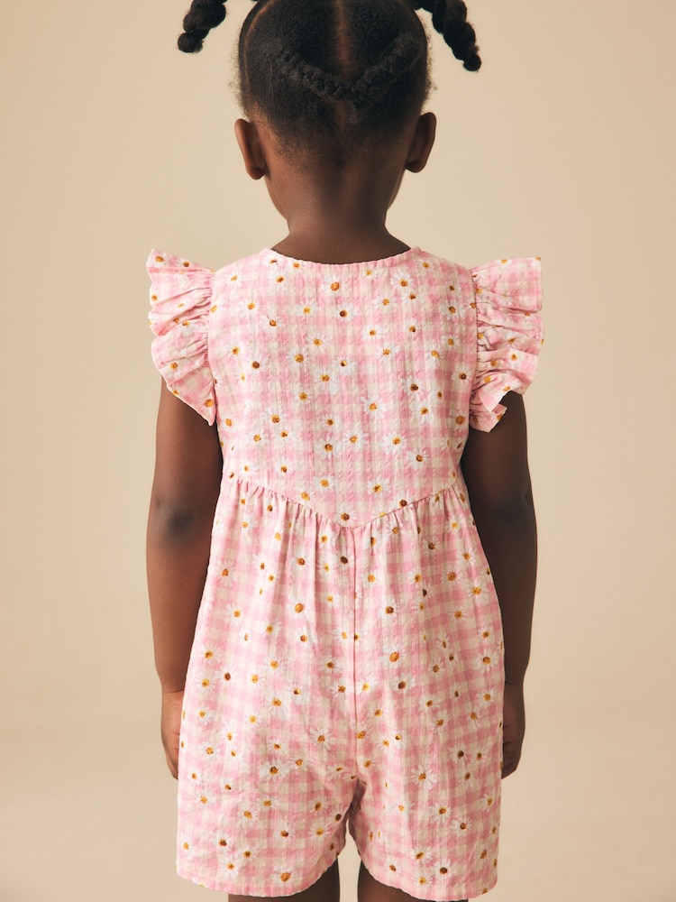 Pink Gingham Floral Flutter Sleeve Playsuit