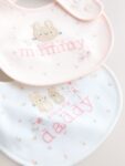 Keep clean-up stylish and gentle with this sweet Family Baby Bibs 2 Pack. This practical duo features a charming family design and is secured with a Popper fastening. The bibs feature Nickel free poppers to help protect against irritation to delicate skin.