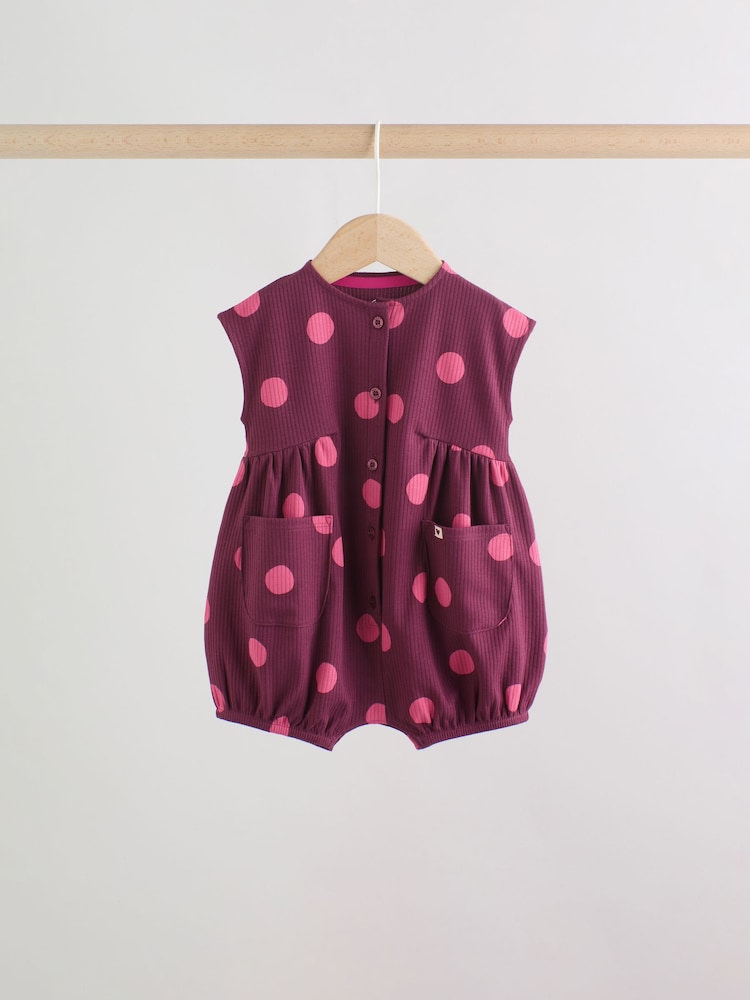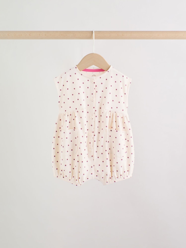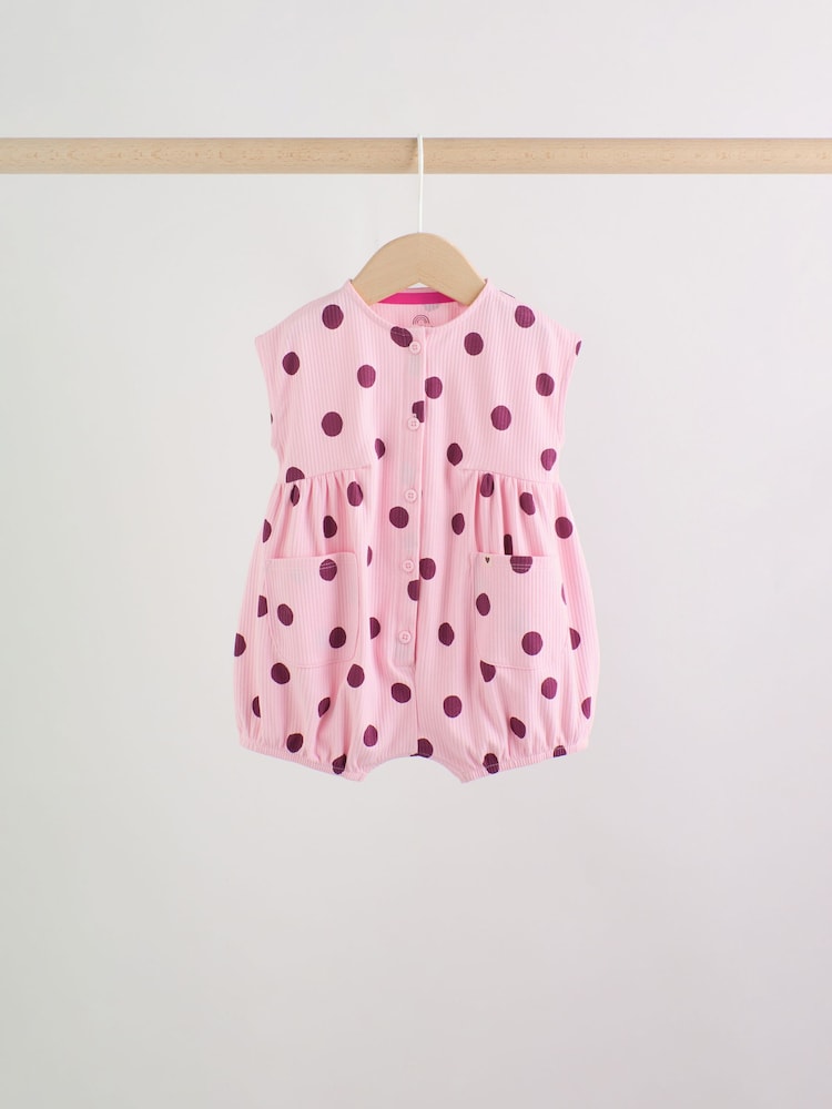 This adorable Printed Button Through Rompersuit is a sweet and cosy option for your little one. Featuring all over prints and a puff print front graphic, the romper has practical front pockets, woven side tabs, a button through rompers fastening, and poppers at the leg opening.