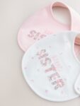 Keep clean-up stylish and gentle with this sweet Pink/White Sister Family Baby Bibs 2 Pack. This practical duo features a charming Sister design and is secured with a Popper fastening. The bibs feature Nickel free poppers to help protect against irritation to delicate skin.