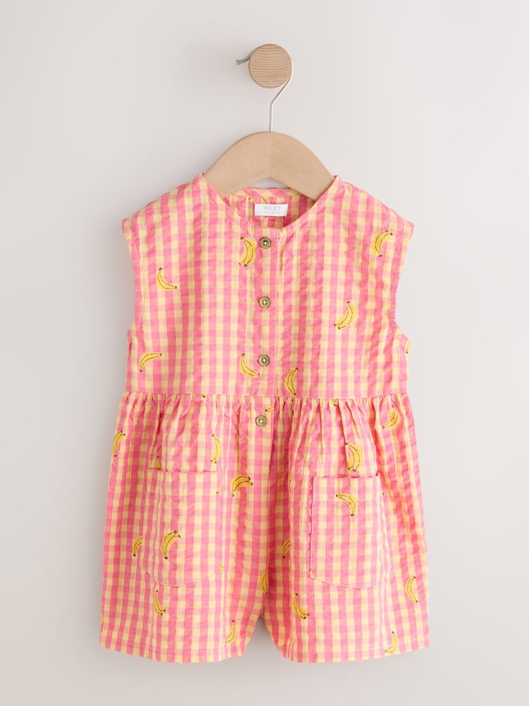 This Trapeze Playsuit is a charming sleeveless one-piece solution for warm-weather fun. The lightweight, airy fabric features a classic grid design layered with a subtle printed motif.
