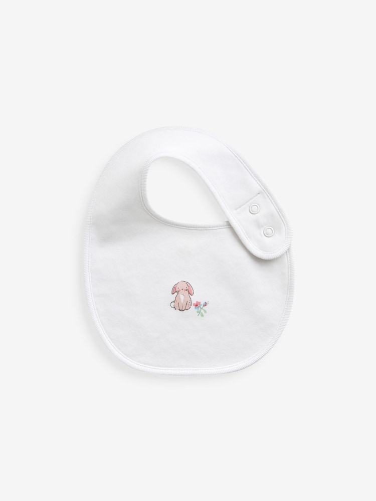 This 3-pack of bibs are made from pure cotton with a dribble-proof cotton-blend back panel, featuring bunny rabbit characters and a floral print, finished with a popper fastening.