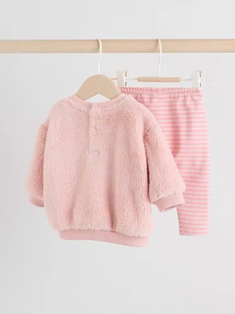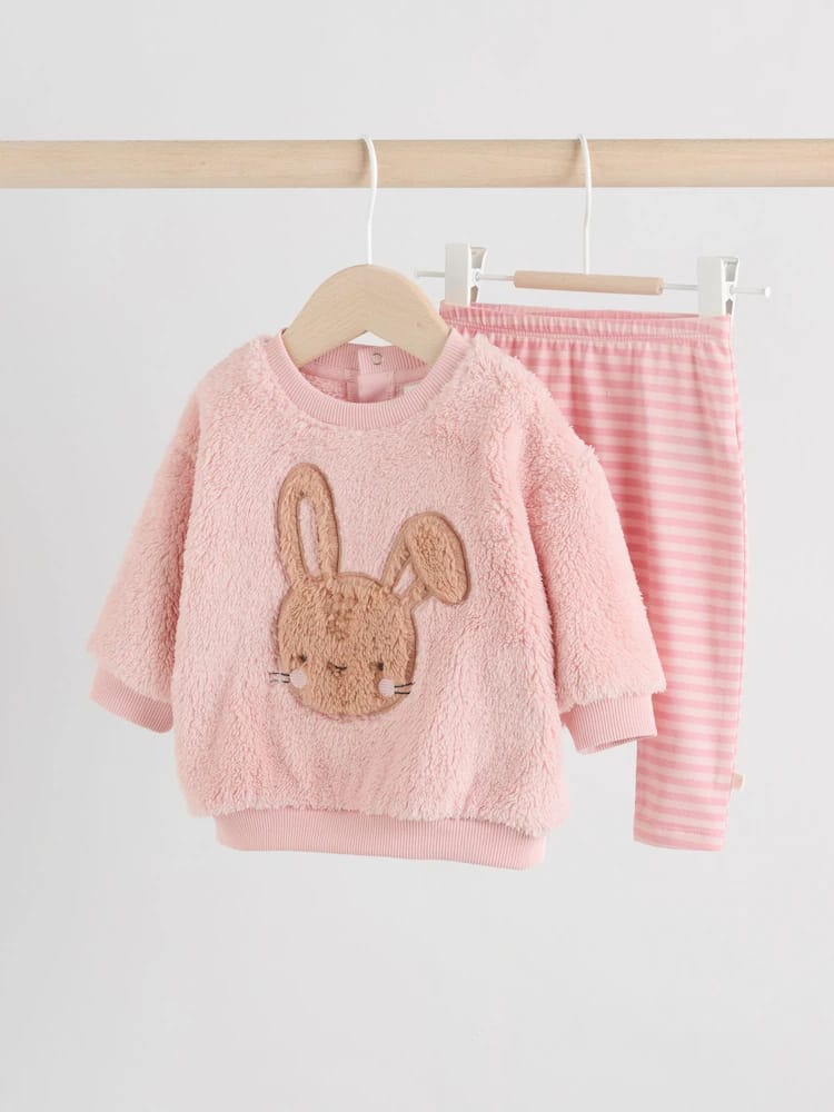 Pink Bunny Baby Fleece Tops and Leggings Set 2 Piece