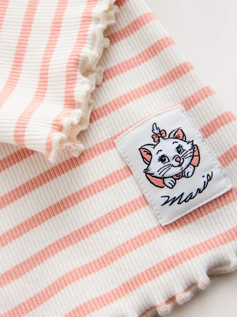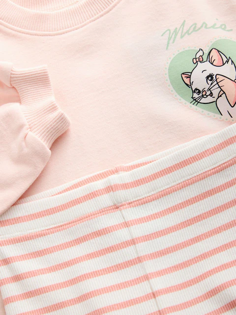 Let your little one step out in style with this adorable Pink Disney Aristocats Marie Set, perfect for her casual wardrobe. Featuring a large front and back print of Disney Character Marie on the soft brushed cotton sweatshirt and pairing it with printed rib striped flare leggings for a fun, fashionable look.