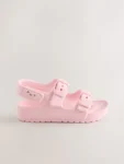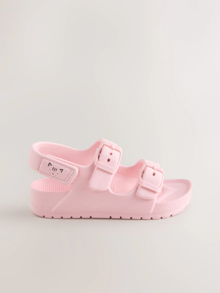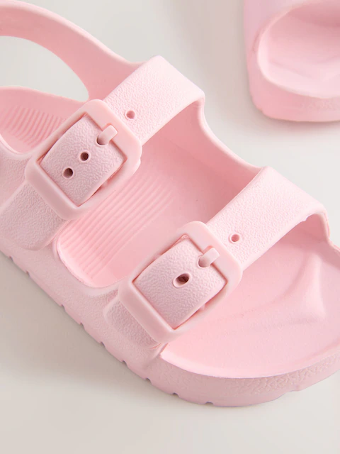 These practical pink double buckle EVA sandals are perfect for everyday or beach wear. Crafted from lightweight EVA material, the simple design features decorative buckles and a secure touch and close fastening for easy fitting. Finished with a slip resistant durable sole, they are reliable and comfortable for all their summer fun.