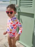 - Pink sunsafe swimsuit with vibrant heart print