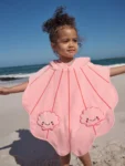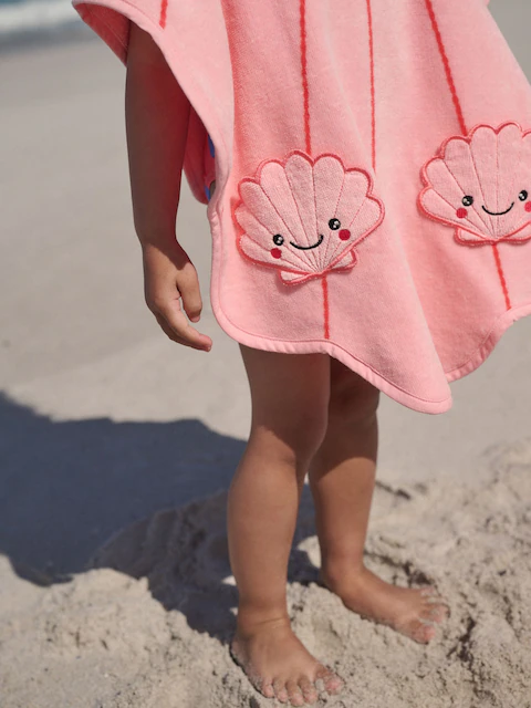 An essential for fun by the water, this enchanting Pink Towelling Poncho is perfect to get little ones dry after splashing in the sea or pool. Crafted from Super comfy soft cotton towelling fabric, it ensures quick drying and warmth. The playful appliqué shell details add a whimsical touch to this practical cover-up.