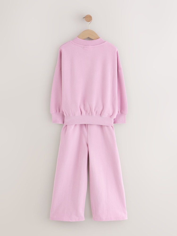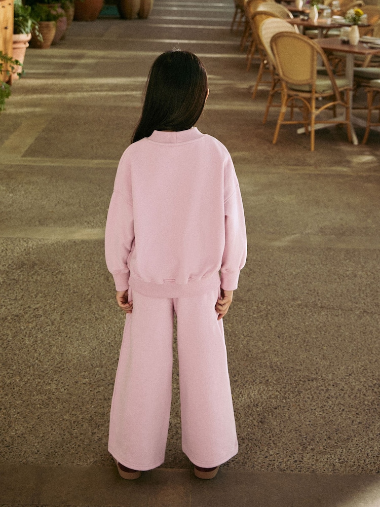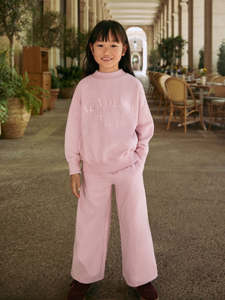 Achieve an effortless athleisure look with this versatile Slogan Sweatshirt And Wide Leg Joggers Set. This complete outfit is crafted from cotton jersey super soft brush back sweat fabric for ultimate comfort. The set features wide leg joggers with a comfortable elasticated waist, ensuring relaxed, fashionable style.