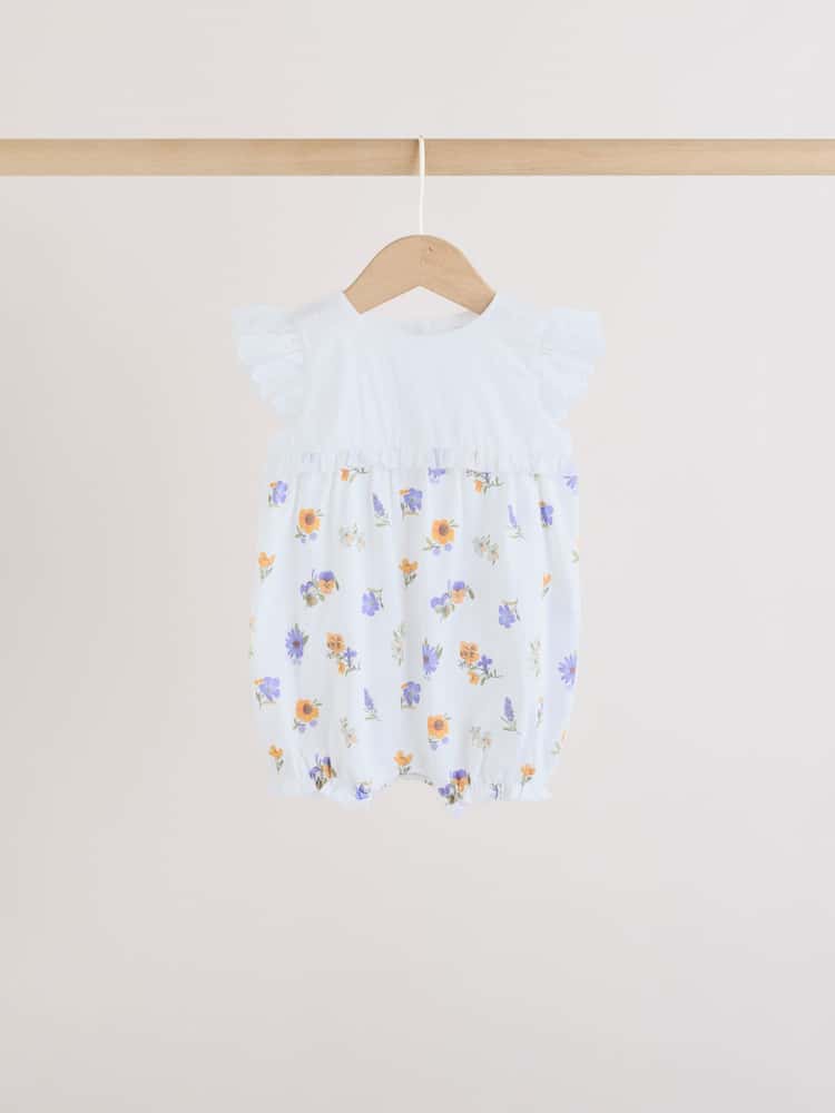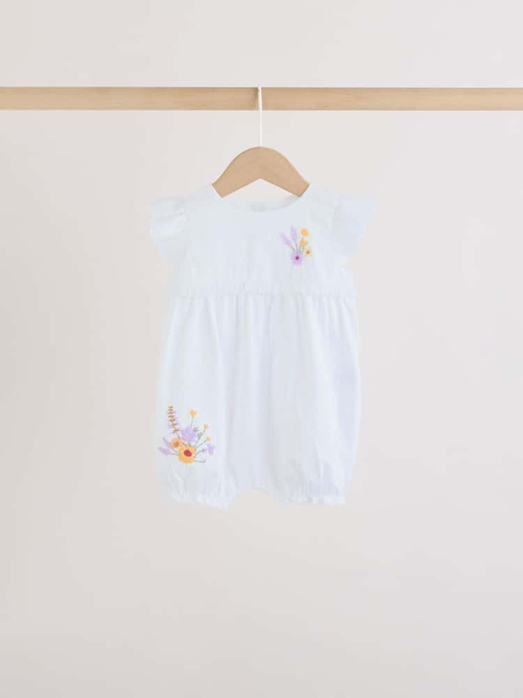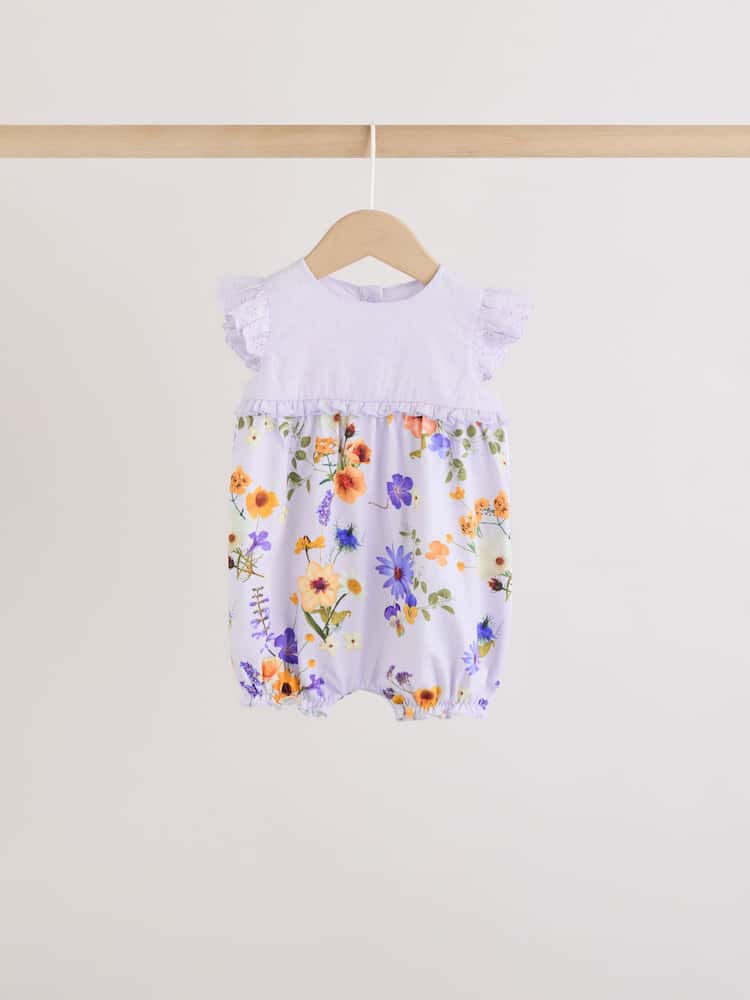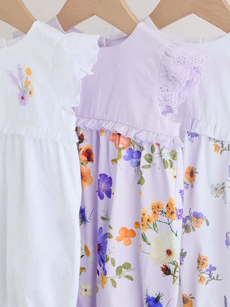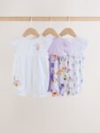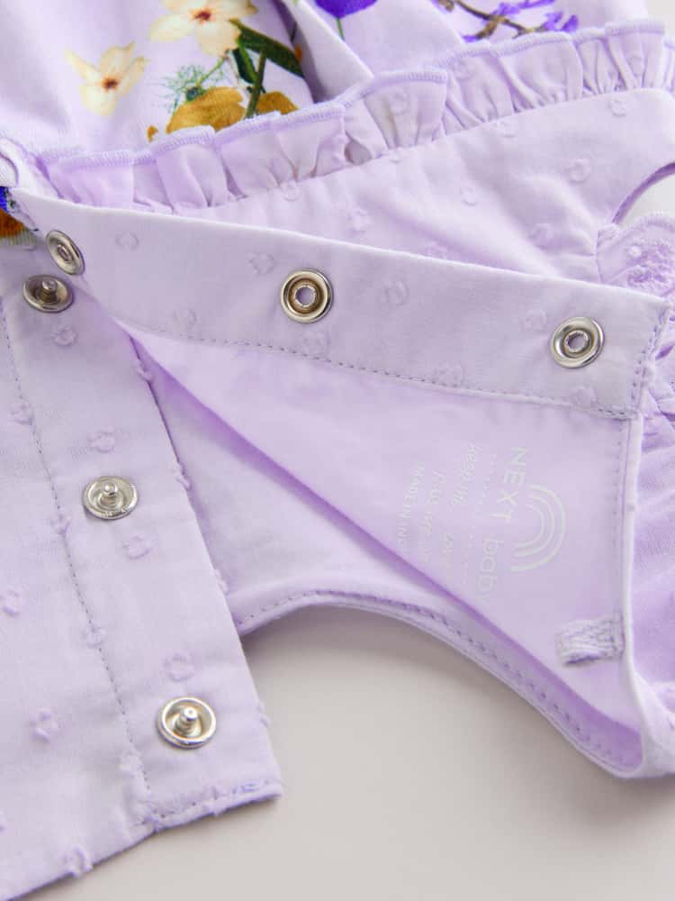 This Purple and White floral 3 Pack Baby Rompers set is a charming and practical collection for a baby’s wardrobe. Each romper features delicate broderie detail and is designed with popper fastenings for easy dressing and quick changes.