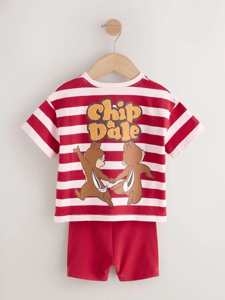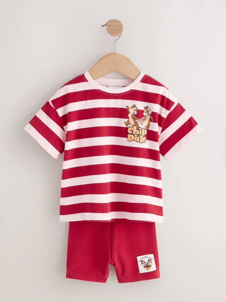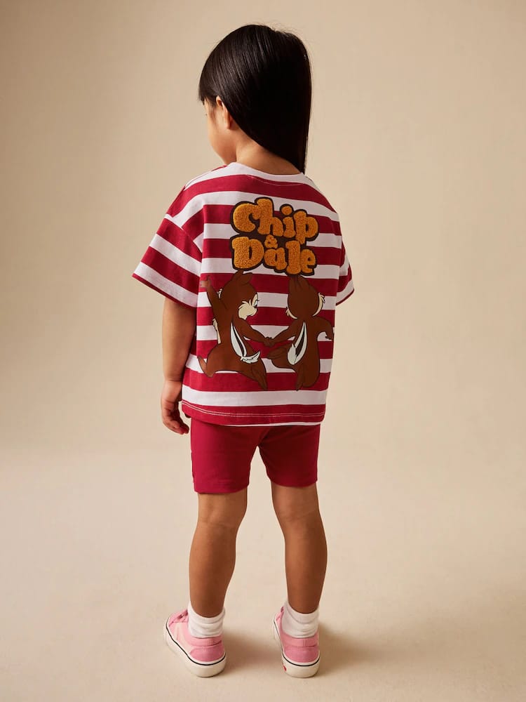 Bring a double dose of mischief to their wardrobe with the Stripe Disney Chip and Dale Shorts Set. This delightful licensed set features everyone’s favourite chipmunk pair, making it an instant hit for young Disney fans. The set includes an oversized stripe t-shirt with bold red and pale pink horizontal bands, decorated with a charming Chip ‘n’ Dale graphic on the chest and back. It is paired with coordinating red cycle shorts that offer a snug, stretchy fit for all-day play. Finished with a character patch on the leg, this set balances a retro sporty vibe with everyday comfort.