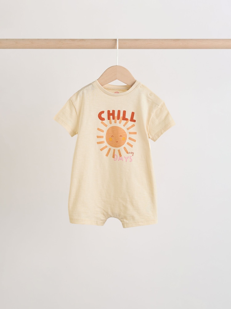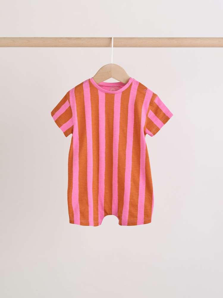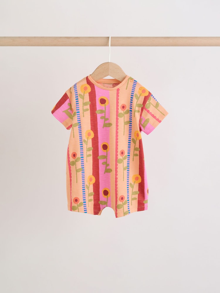 This set of 3 short-sleeved jersey rompers feature popper fastening for easy changing.