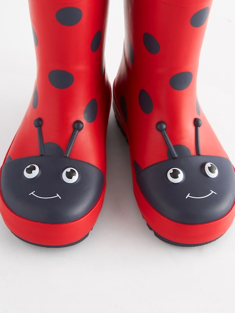 These red waterproof wellies have been designed with handles to the upper, making it easy for your little ones to put them on and take them off, with a cute ladybird design, a cosy fleece lining and a slip-resistant sole.