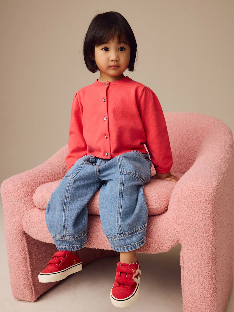 Red Pleated Sleeve Cardigan