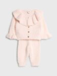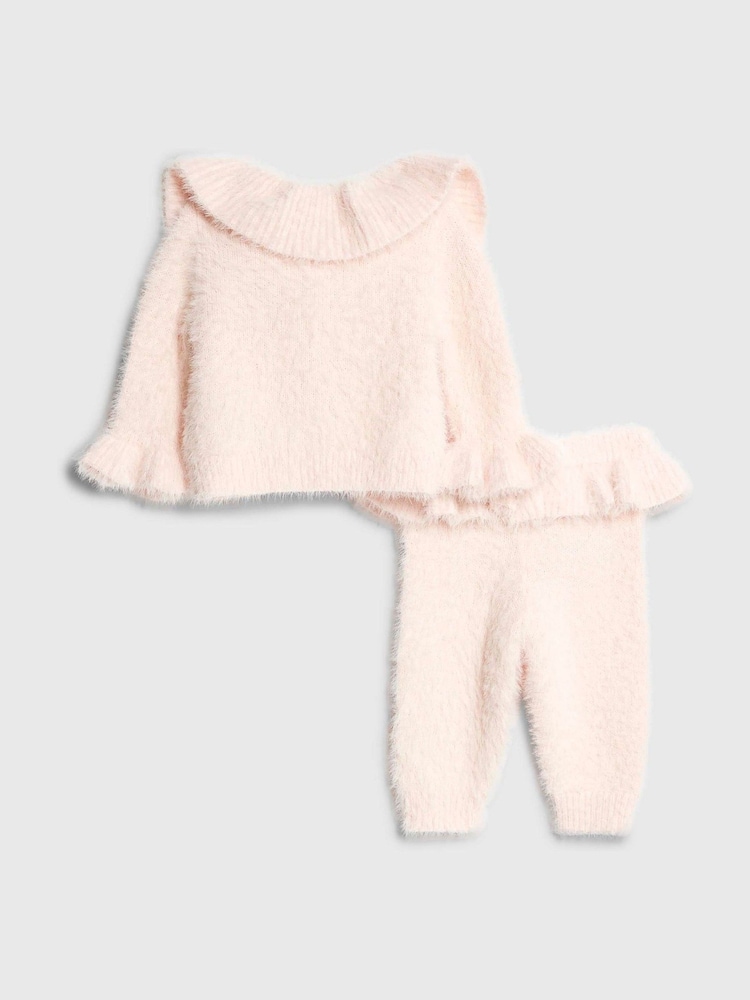 Set of 2 Knitted Fluffy detail Cardigan Crew neck Buttoned fastening Long sleeves Bottoms Bubble hem Elasticated waist