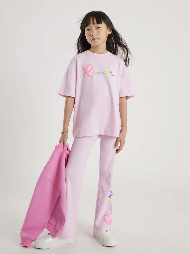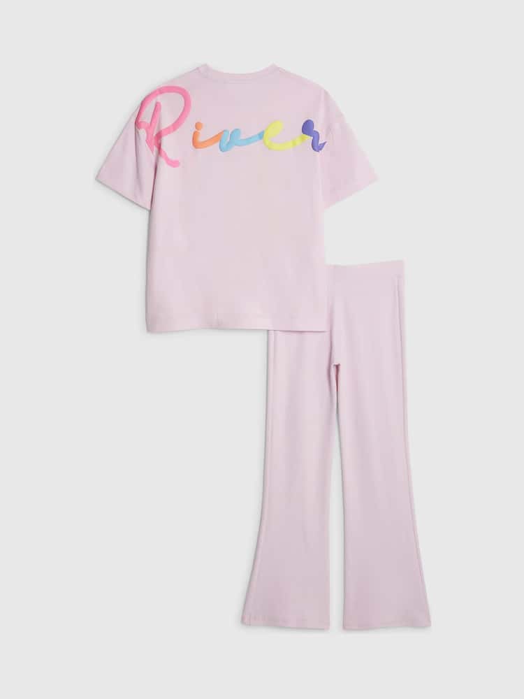 Set of 2 • Matching multicoloured embossed river graphic T-Shirt • Crew neck • Short sleeves Trousers • Elasticated waistband