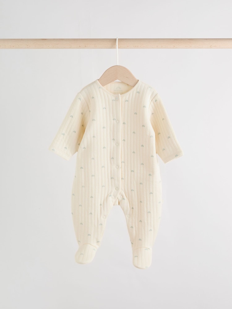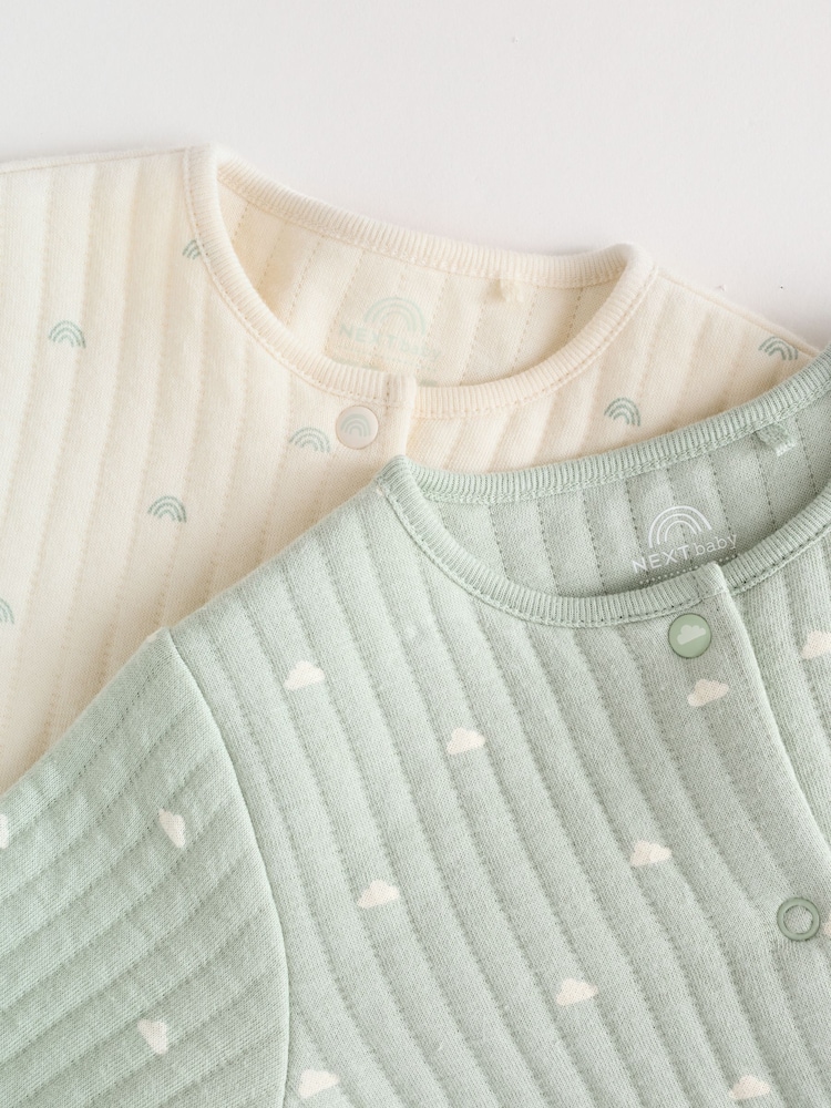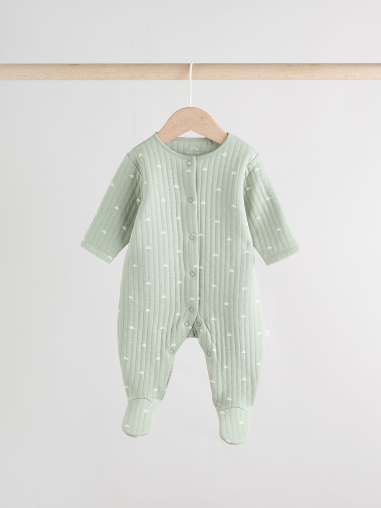 Keep them snug and comfortable in this 2 pack of sage green baby sleepsuits. The quilted design and soft cotton fabric provide a cosy feel, while the full popper fastening makes dressing and nappy changes a breeze. With a playful mix of patterns and a plain design, this pack is a practical and adorable addition to their bedtime essentials