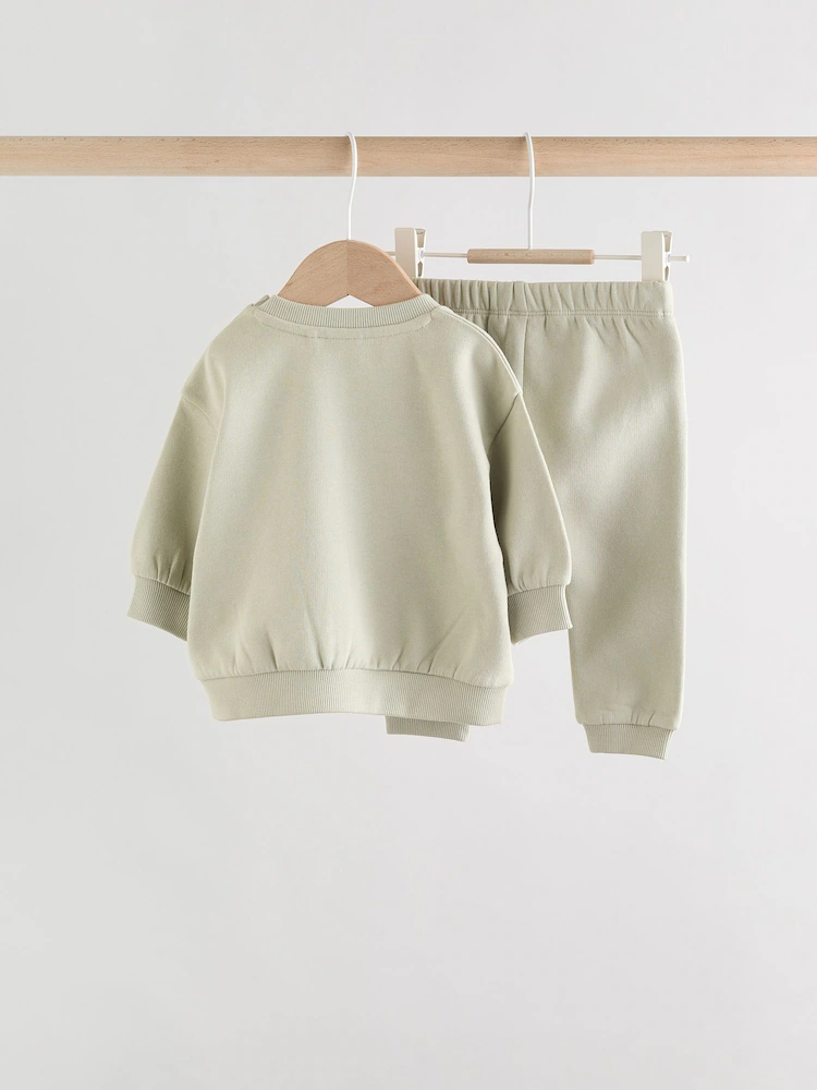 Bring a playful touch to their everyday essentials with this baby sweater and joggers set, featuring a charming chest boucle design. The soft, neutral-toned sweater is detailed with an adorable tractor boucle chest sign off for added texture. For easy changes, the top includes practical popper fastenings at the shoulder.