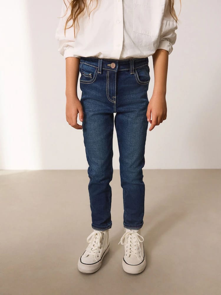 A true wardrobe staple, these mid-rise skinny denim dark wash jeans are designed with a slight stretch for ultimate comfort.