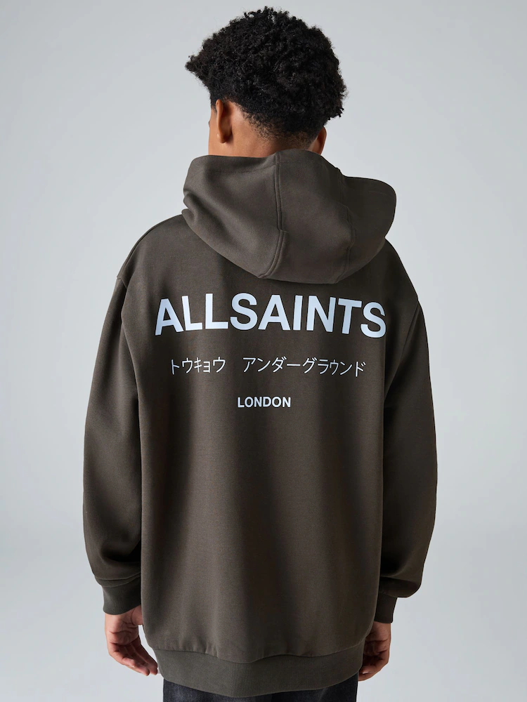 Keep them wrapped up in style with this smALLSAINTS Underground hoodie. A unisex design that delivers an oversized fit, this classic jumper made from soft cotton also has a kangaroo pocket on the front with the iconic AllSaints signature logo on the chest and back.