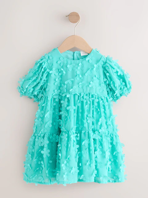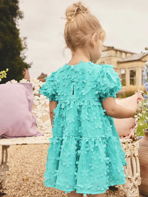 This adorable short sleeve dress is ideal for special occasions in the summer, featuring pretty 3D flower detailing and a round collar, boasting a cotton lining for added comfort.