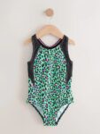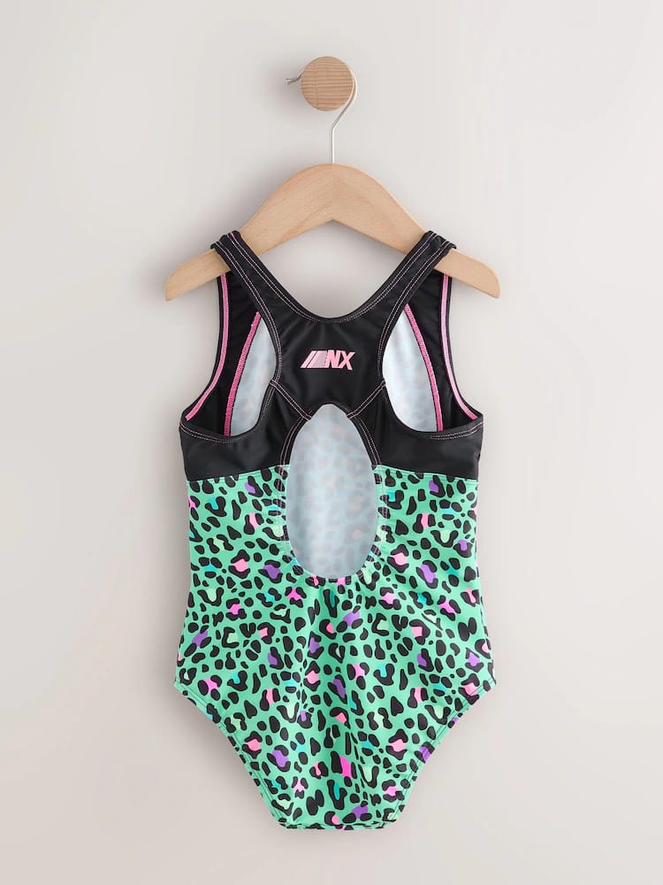 Make a splash with this vibrant animal print swimsuit, perfect for swimming lessons and poolside fun. Featuring a cool open back design and super stretchy fabric, it offers both comfort and freedom of movement for active days in the water.
