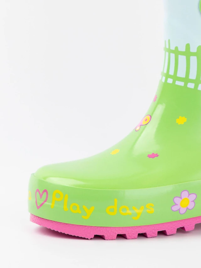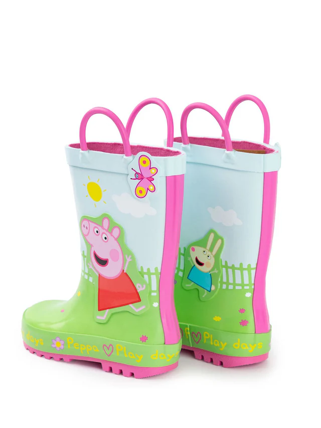 These Peppa Pig Kids Wellies with Handles are playful, waterproof rain boots featuring colourful Peppa Pig designs that bring fun to rainy days. Designed with easy-grip handles for quick and independent wear, these wellies combine practicality with the charm of Peppa Pig for endless fun