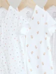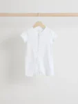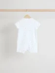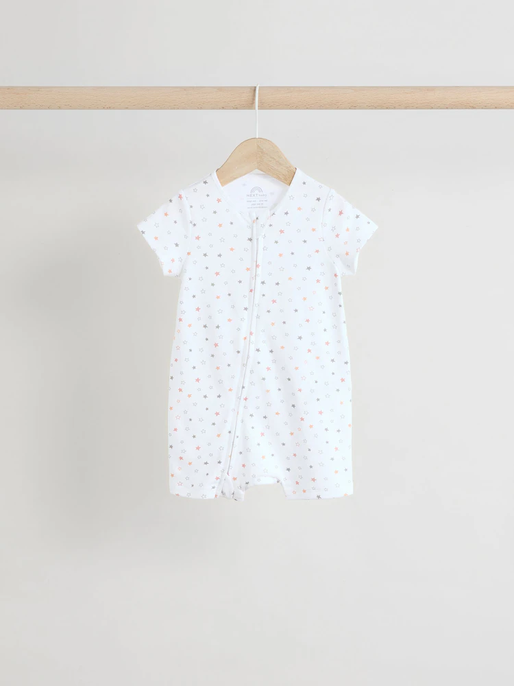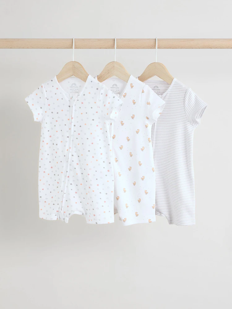 Kit out their collection with our 3 pack of white romper sleepsuits. Made from pure cotton, each piece is coated in a fun print and complete with two way zip fastening and short sleeves.