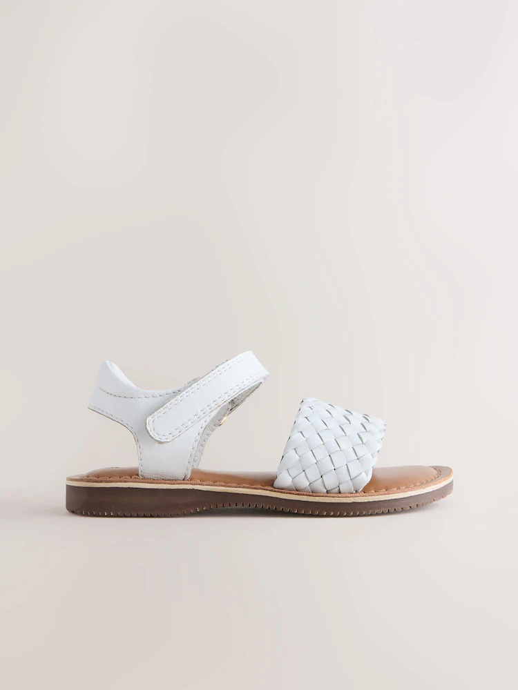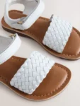 White Wide Fit (G) Leather Twist Sandals with Touch Fastening