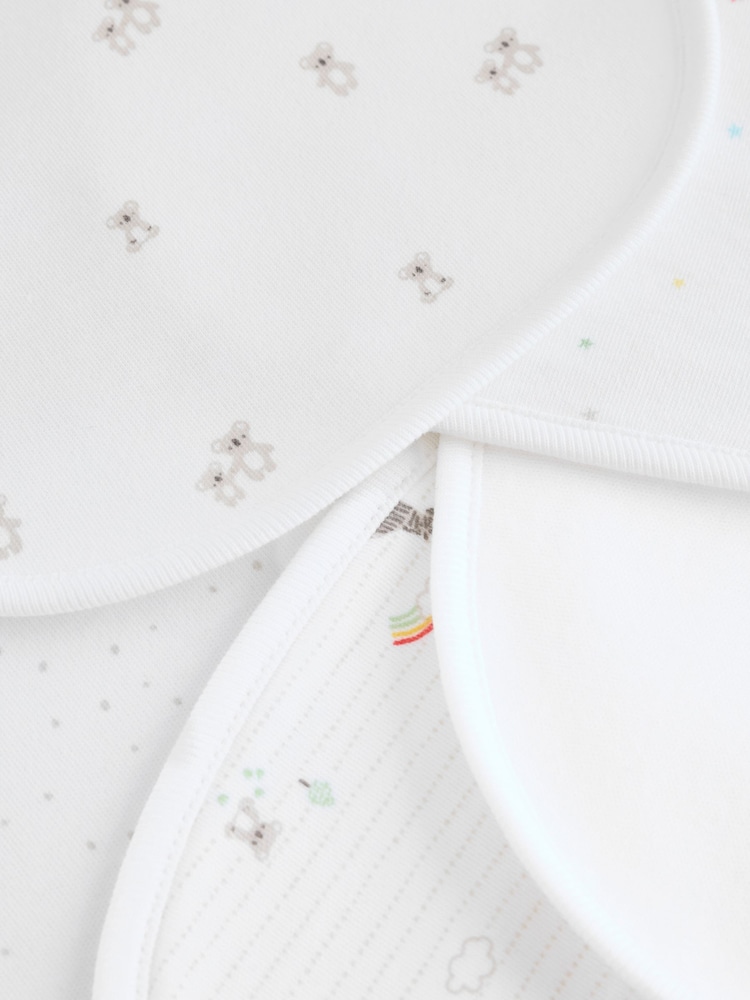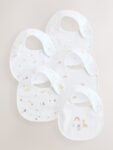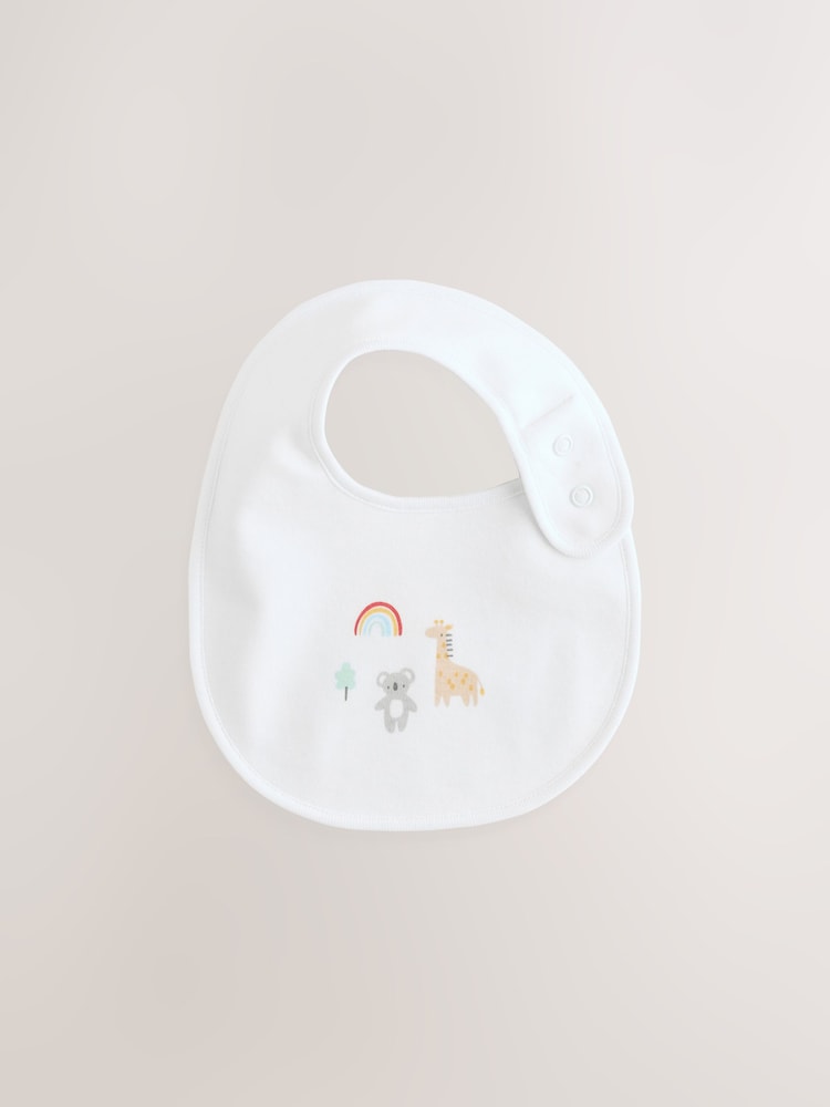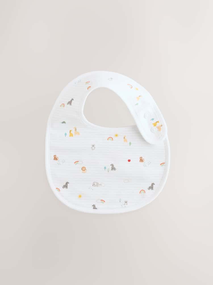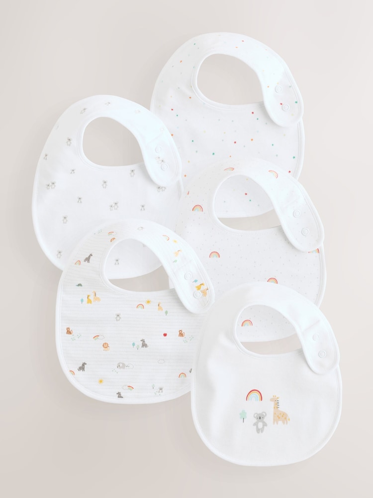 Ensure mealtimes are mess-free with this five-pack of baby bibs. Crafted from soft cotton and featuring a dribble-proof layer, they are both comfortable and practical. The popper fastenings and cute all-over animal print make them a daily essential.