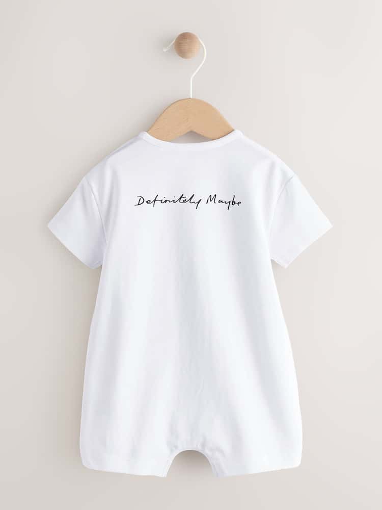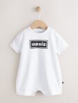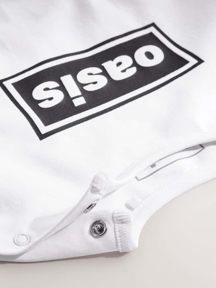 Perfect for your little rock ‘n roll star, this cotton-rich baby romper features the iconic Oasis logo to the chest, featuring a popper fastening, short sleeves and short legs.