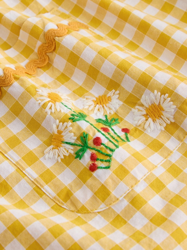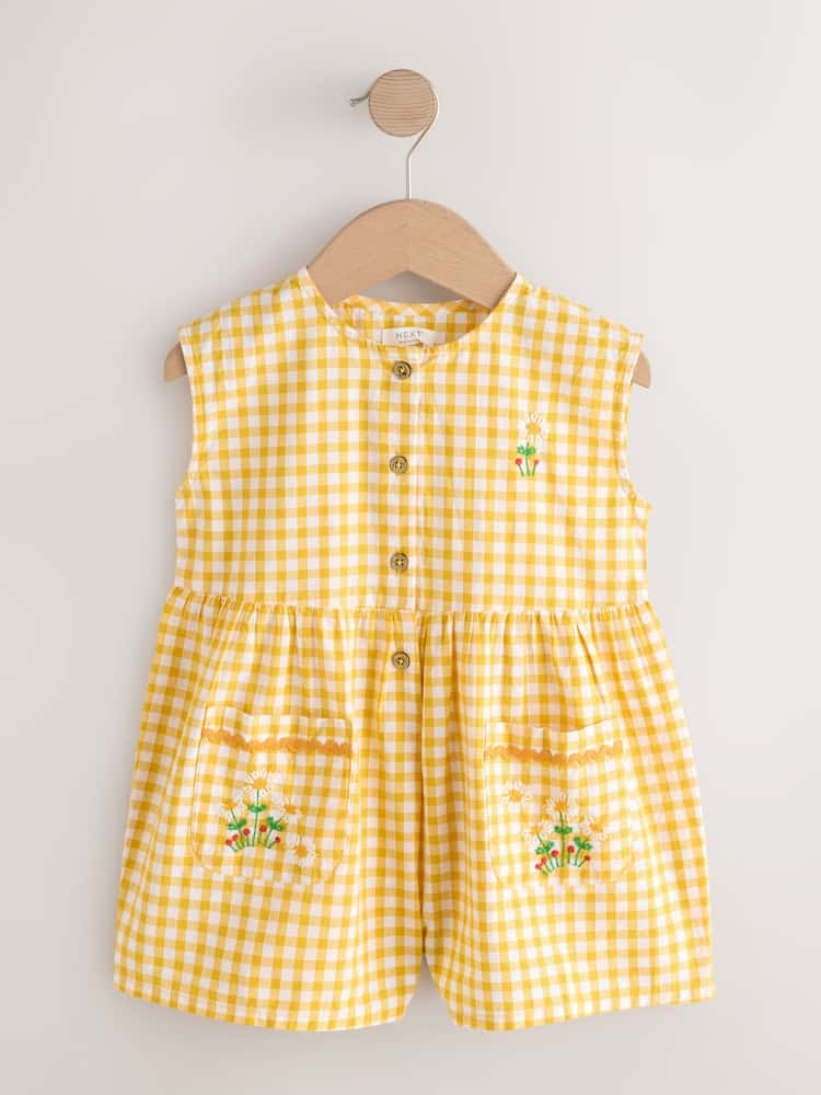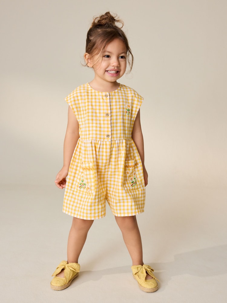 Yellow Gingham Embroidered Sleeveless Playsuit