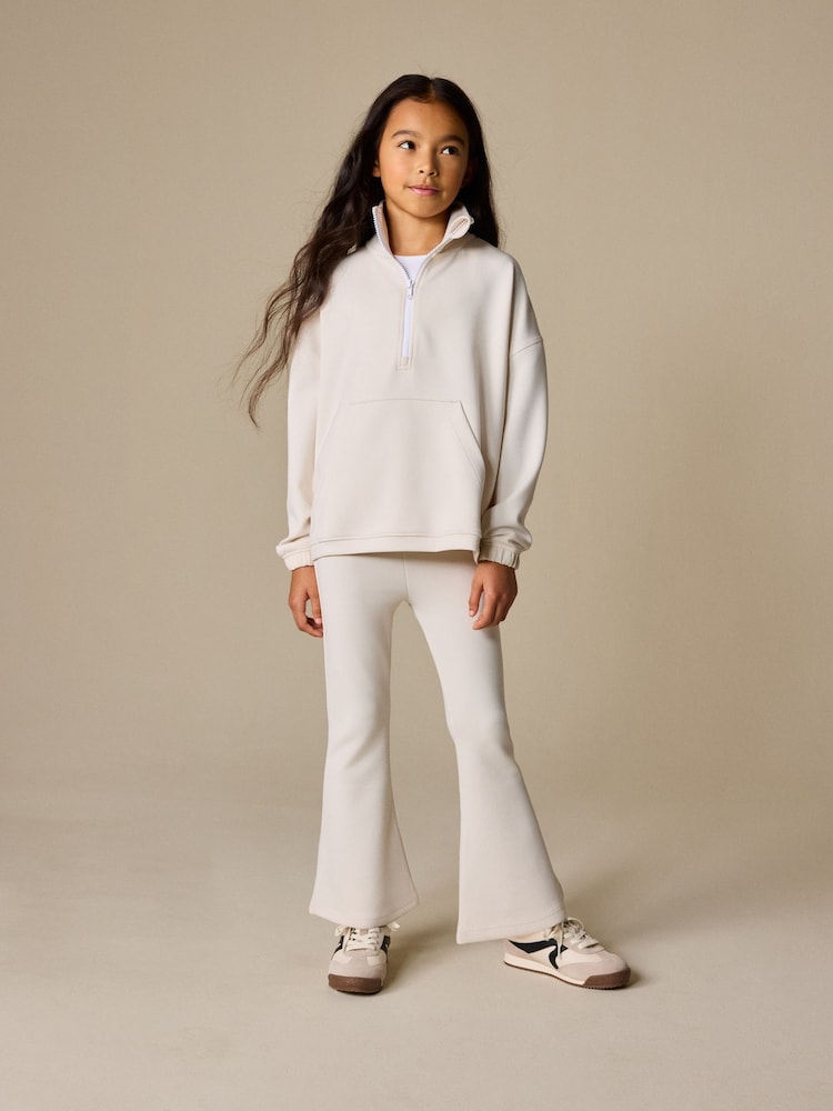 This stylish Zip Neck Top and Foldover Flare Set is a comfortable and trendy co-ord outfit. The set includes a long-sleeve, high-neck top with a half-zip detail and a pair of trousers with a foldover flare design.